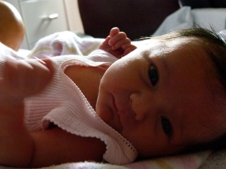 Could it be possible that she really is all mine? That’s what I think every time I look at her. I can’t believe she’s mine. She’s so incredibly perfect in every way. She’s tiny (2.685kg or 5.9lb), has a mop of dark hair and eyes such a deep blue I could swim in them.