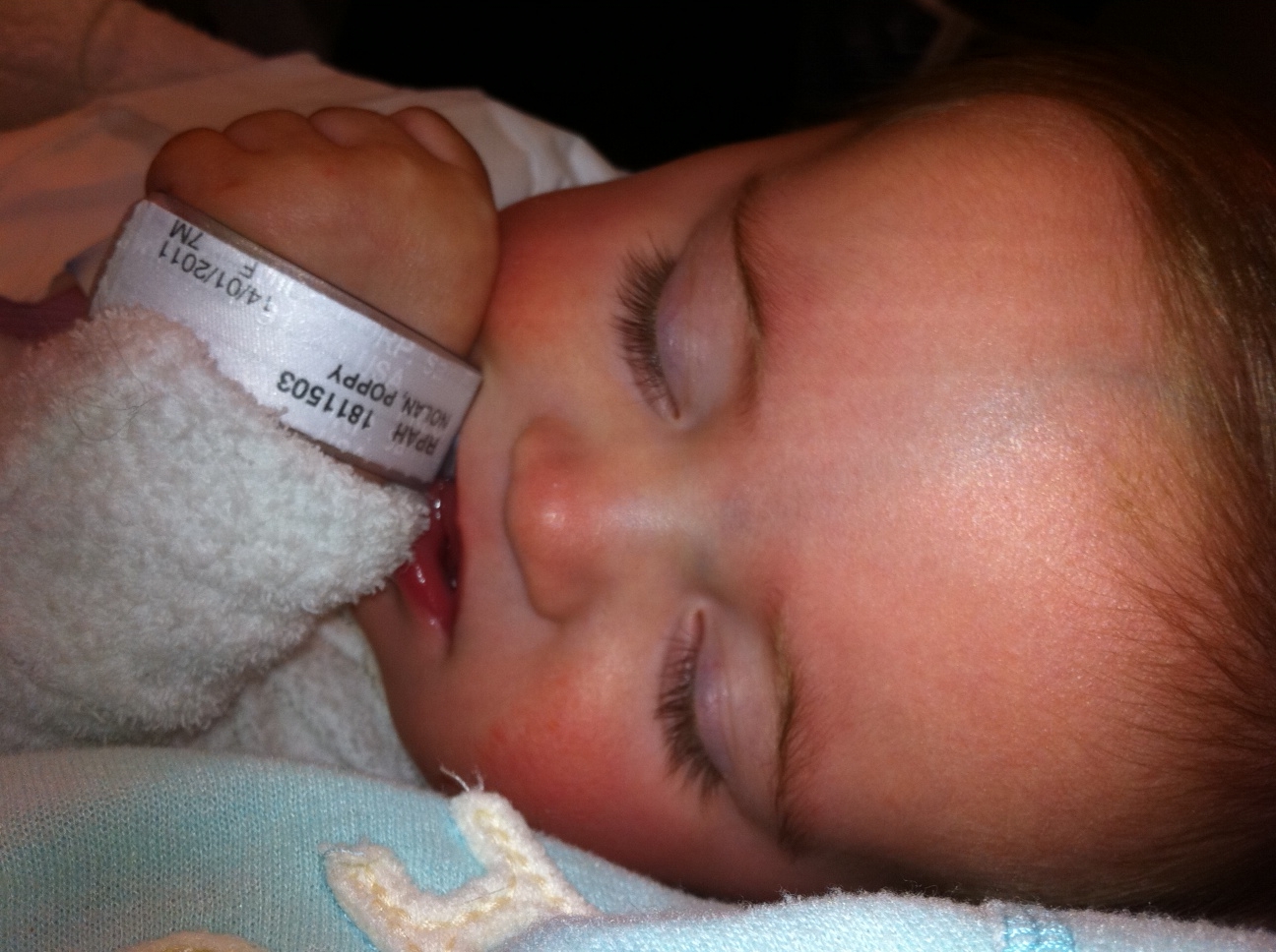 Back to our waiting lounge I try to feed her again, but she is more interested in sleeping than feeding. Of course she is – it’s 1am. I’m more interested in sleeping too, but my adrenalin won’t let me. They finally give her some panadol. She has a very small feed then falls asleep in my arms. She looks so peaceful and blissfully unaware of the virus trying to make nasty in her precious little body.