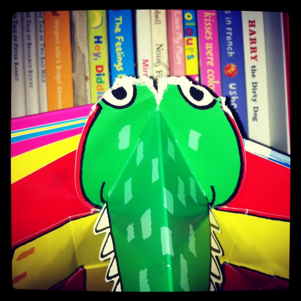 I think Bubba may be taking this ingesting books idea a bit to literally. My vegetarian bubba seems to have been snacking on a crocodile …