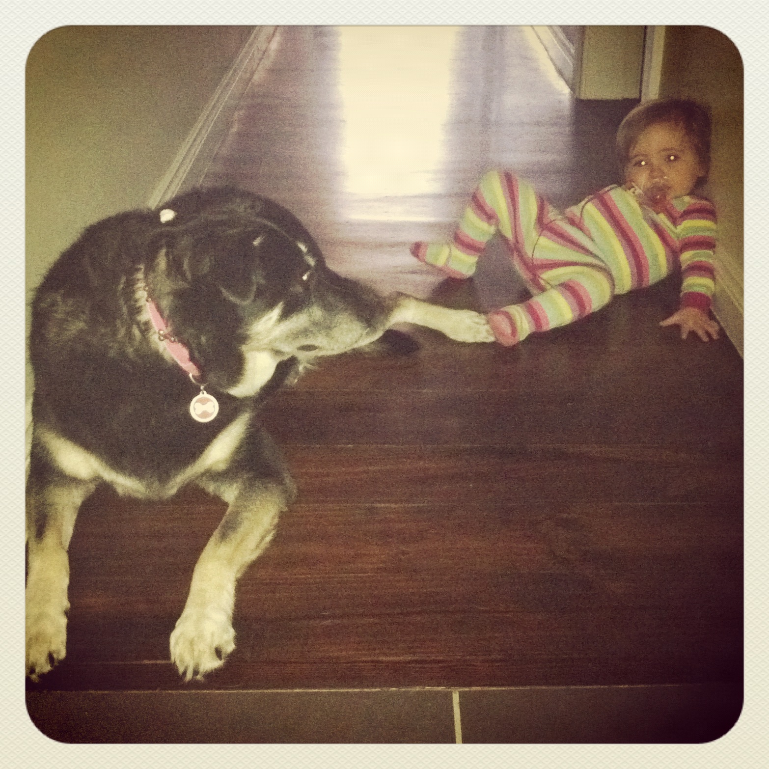 She was chatting with Bella (out the side of her mouth past the dummy!). That position can’t be comfortable. Then I looked closer – and noticed they were playing tootsies.