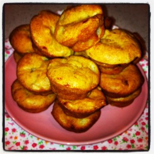I made her some gluten and sugar-free mini banana and pear muffins for snacks for daycare this week. And even this sugar addict mumma has to say they’re pretty good!