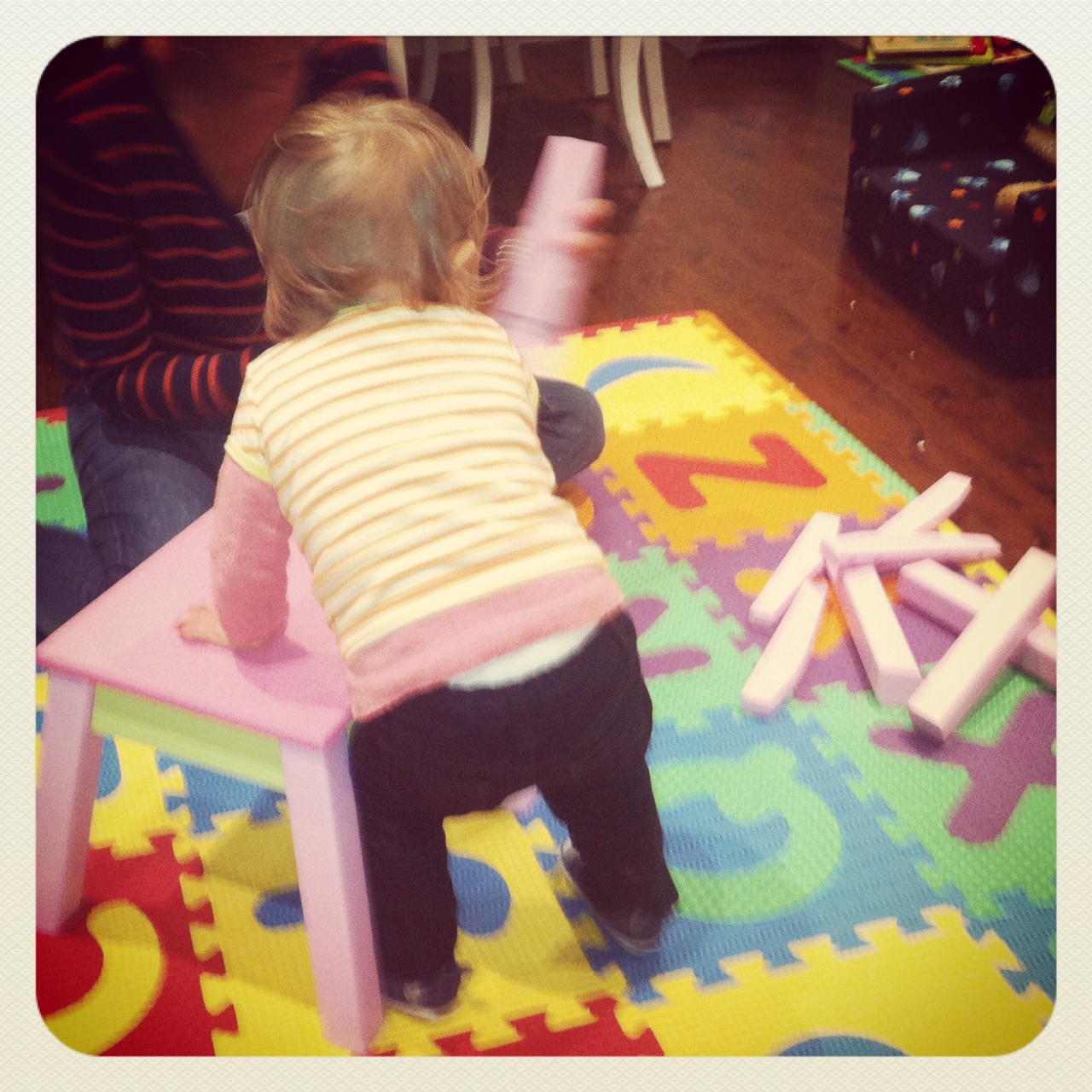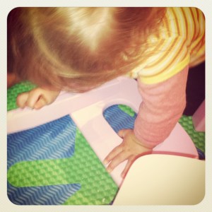 She showed great interest (and, considering she’s only 16 months – amazing skill) in putting together her new table and chairs! She held the Allen key correctly, and made sure she put it into each hole containing a screw.