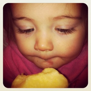 2. What a wonderful way to introduce her to new tastes and smells! She certainly seems to be enjoying her apple.