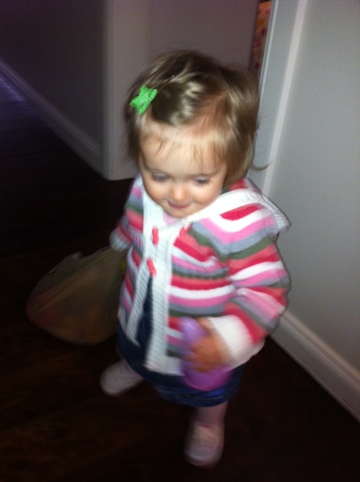 In the fruit and vegetable section this was okay. I carried the basket, held Bubba’s hand and each time I picked up an item I put the basket down on the ground, handed the item to Bubba and she put it in the basket. Teamwork!