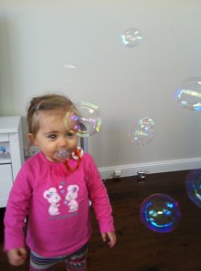 In an attempt to side track Bubba from the fact that she’s been coughing for days, has had very little sleep and feels awful, I got out the bubbles.
