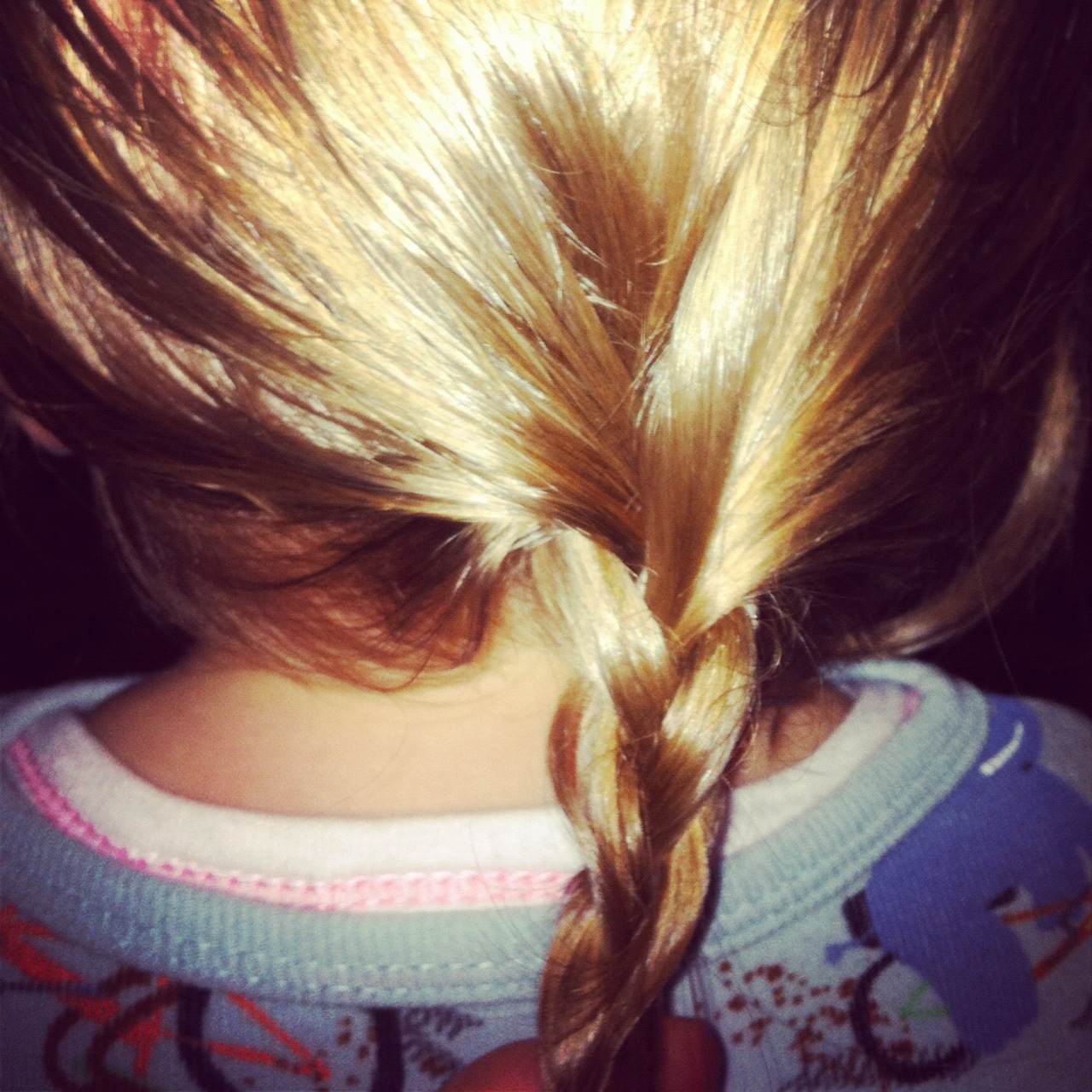 How (and when) did that happen? I didn’t even think it would be long enough as I started the attempt – I’d been spurred on by a photo my lovely friend had sent me of her daughter’s hair in a similar braid – her daughter is only one day older than my Love Bug.