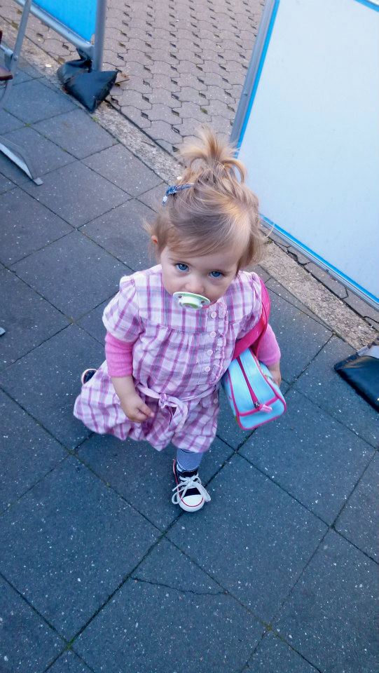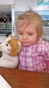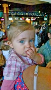 So adorable!! Peanut was afraid of mascots in costume for years. She still may be. They are pretty scary. You should see the picture of her, at about Poppy’s age, trying to get away from a giant Mickey Mouse.