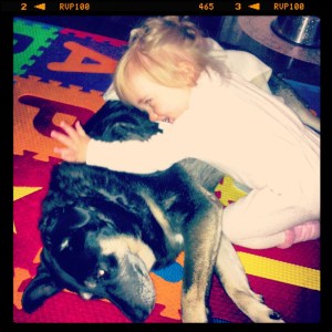 Bubba likes to lay me down on the floor and put one of her blankies (or a teatowel, which ever is closest) over me. She then generally jumps on me for a stacks on cuddle.