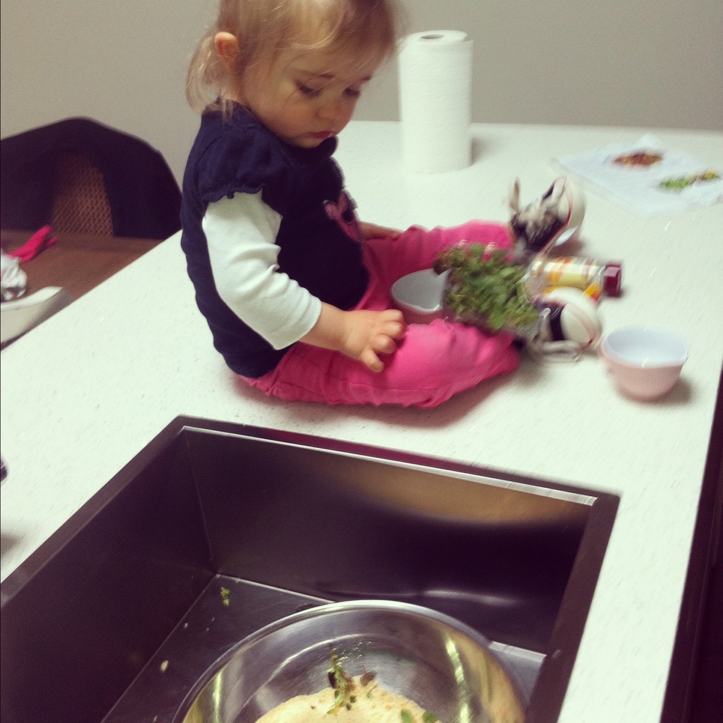 Bubba loves to help me when I’m cooking. I was making broccoli patties (good for hiding all manner of veggies to all of your mummas of fussy eating toddlers out there), and she thought they needed more oregano.