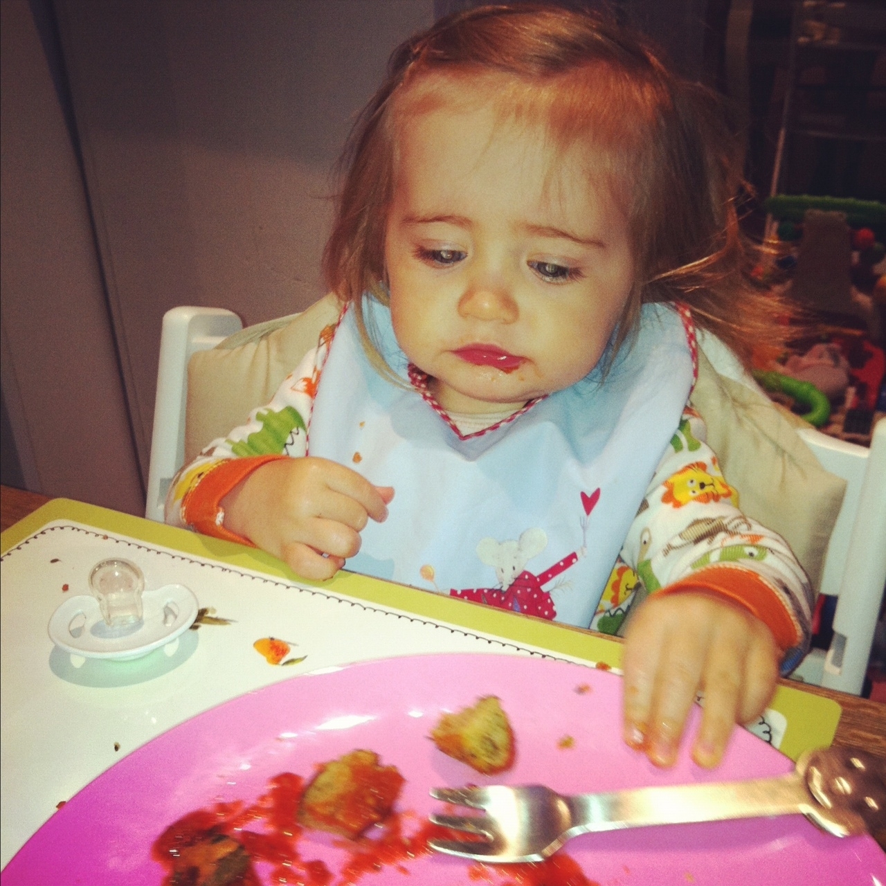 Except that she’d only had about three bites. And she’s not a fussy eater by any means. In fact, she usually eats like a baby dinosaur: anything I put in front of her goes straight in.