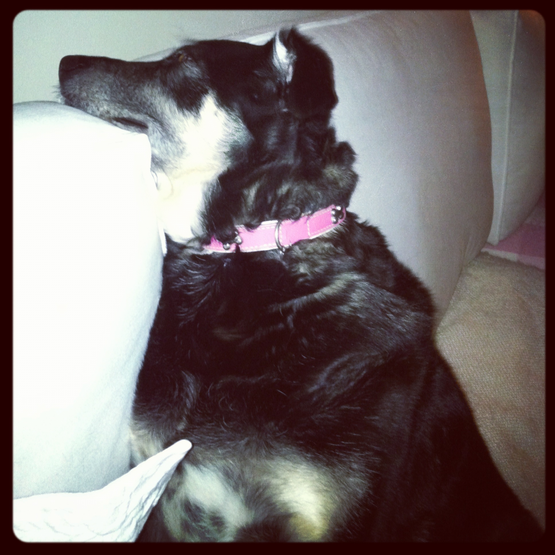 Sage sometimes sleeps like Bella. You wonder whether their necks end up in ‘cricks’!