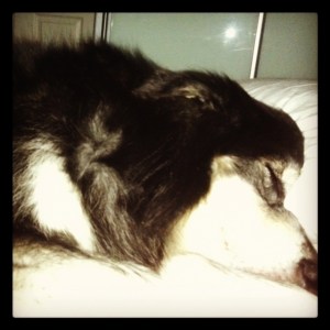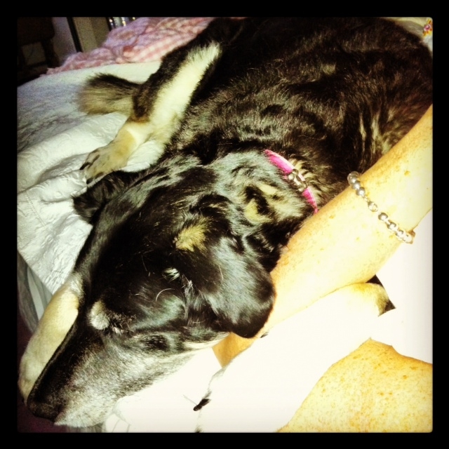Bella and Beary snuggled up even closer than usual last night. At one point I woke up super warm and realised it was because Beary (who usually gets up for a cuddle goodnight when I first go to bed but then sleeps on the floor until it’s time for his morning cuddle) had climbed onto the bed and snuggled in so that I was spooning him. He’s not a small dog so his body was almost the length of mine.