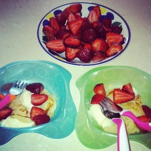 The best part of the strawberry picking was dinner: pancakes with ice-cream and strawberries. Bubba seemed to like her first couple of spoons if vanilla bean ice cream.