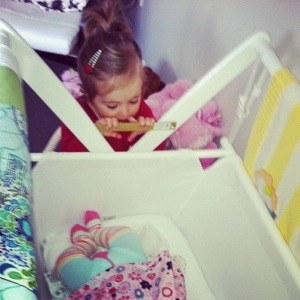 Happy that her lovely caring self is so concerned for this gorgeous bubba. That she can often be found at the end of her cot, swinging her in her cradle, singing to her, or helping put her dummy in when there are tears.