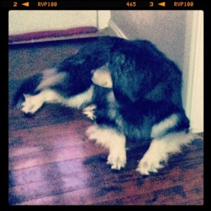Since we’ve returned from our holiday, every time Bubba is in bed, Beary has taken up residence outside her bedroom door, and just inside the front door.