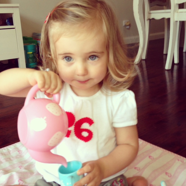 After Bubba’s afternoon sleep, I took her 26 month photos, and we had a tea party.
