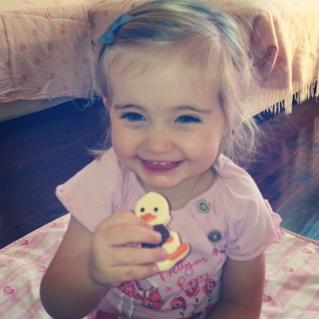 When I left my job last week, some of my work pals gave me a box of chocolates from one of my favourite chocolate shops. In the selection was a white chocolate duck, which they told me was a special chocolate for Bubba, not for mumma.