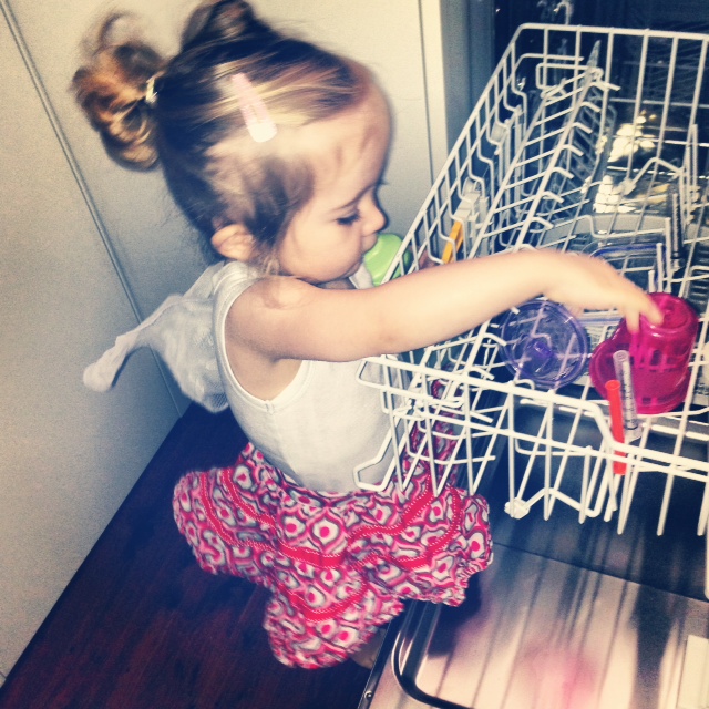 Bubba was naming them as she lifted each from the dishwasher trays and handed them to me. Bubba bowl. Spoon. Mumma cup. Fork. Mumma plate.