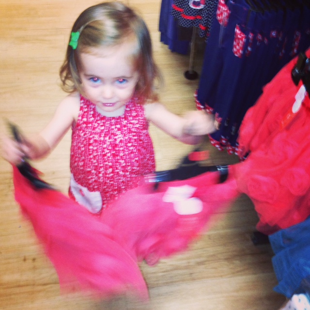 Ballet mumma. Flowers. Pink.Prerry. Giving it a twirl for added effect, then deciding that perhaps two would be better than one. I told her they were too big. Too big she repeated, hanging them tidily back on the rack.
