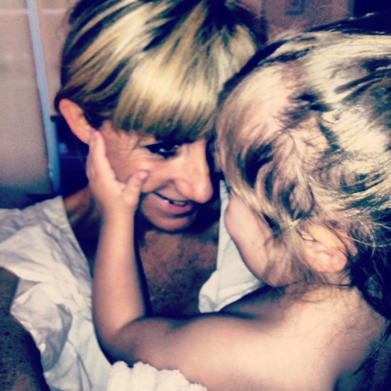 After Bubba’s bath on Sunday night, I wrapped her in a towel to carry her to her room to put her pyjamas on. But we got a little side-tracked.