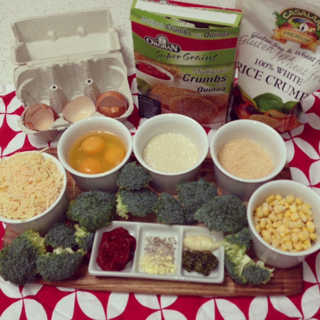 Over the past year, they’ve evolved. In our home they are made with gluten-free rice crumbs, or quinoa crumbs or a combination of both. They are incredibly versatile because you can have one hero vegetable, or a number of vegetables in them. You can bake them in little rounds, as the original recipe suggested, or bigger bites or as we’ve tried recently, as patties. These are meant to be a quick and easy recipe, using whatever veggies are floating around in your fridge.