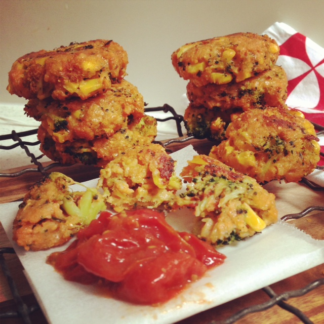 Versatile vegetable patties: I’ve been making these for at least a year now. I don’t actually remember where I found the original recipe, but I remember thinking they would be a good place to hide vegetables if you had a child who wasn’t overly keen. Unlike Love Bug, who can’t get enough of her veggies and fruit.