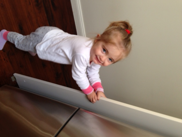 As I happened to have my phone in my hand when she did it this afternoon, I caught it. Yes, she’s in her pyjamas. It’s 3pm. She’s had a temperature between 38 and 40 all weekend. Poor little love.