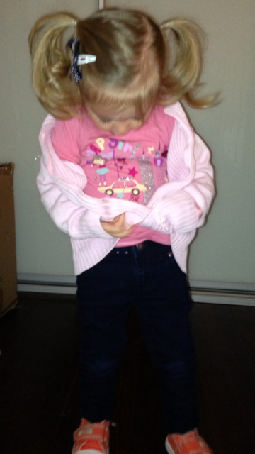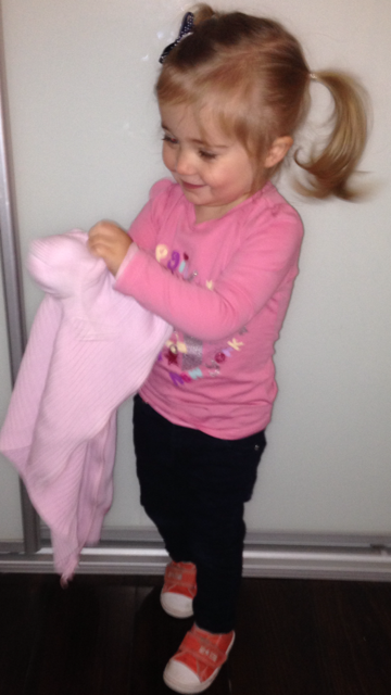 Love Bug has decided that not only is she going to select which particular pink item she wants to put on, but she’s now at that gorgeous age of learning to dress herself.