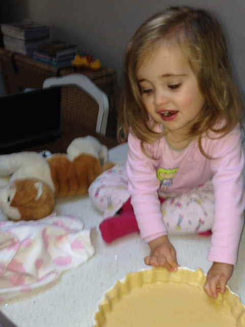 Butter pie dish and line with pastry. If you’re lucky like me and have a gorgeous sous chef, she’ll happily do it for you, then look ever so pleased with herself after!