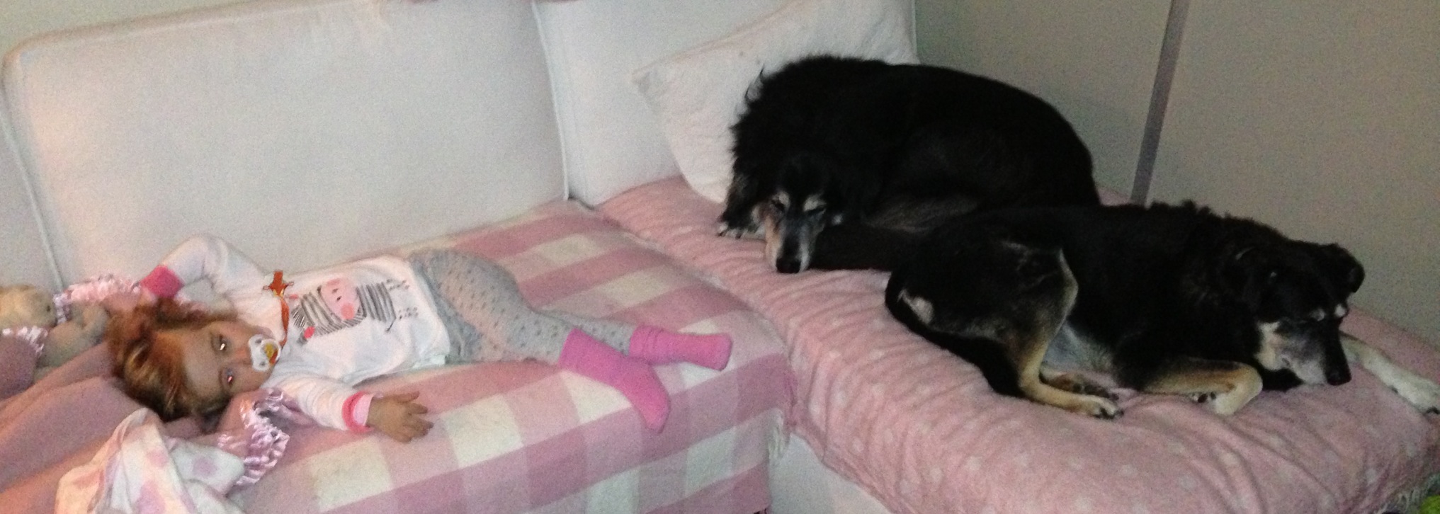 At least she managed to eat a little dinner before she snuggled down on the couch. She started at the opposite end to Bella and Beary … and ended up with her toes tucked beneath them.