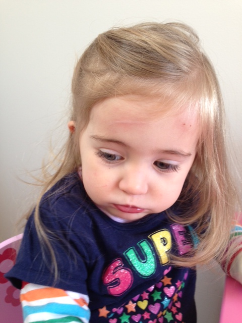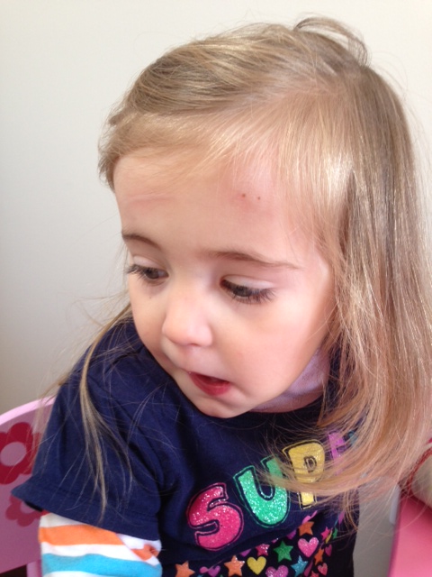 And it wasn’t until I took this photo a little later that I noticed she also somehow managed to scratch the other side of her forehead too.
