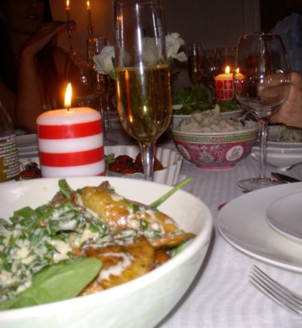 To serve, toss potatoes with baby spinach and parmesan dressing.