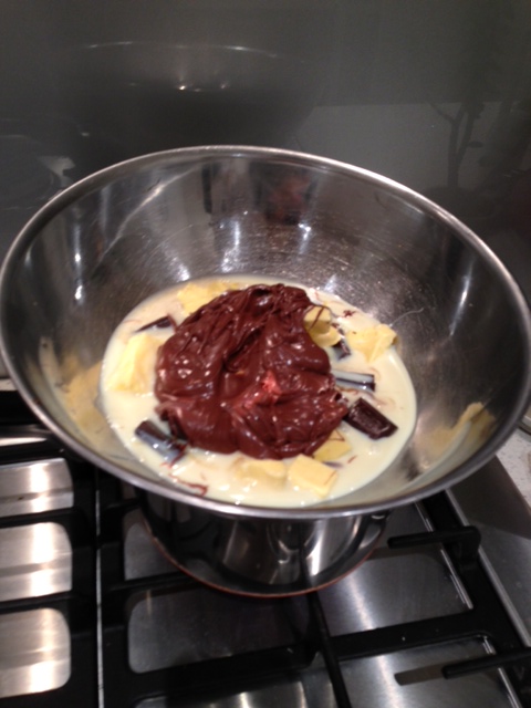 As I reached for the Nutella and a spoon, I thought to myself that it may not have been such a good idea to buy the big jar, just because it was on sale and was only about 5 cents more for twice the hazelnutty chocolatey goodness. As I spooned some into my mouth, I also thought perhaps I should do something with it other than eat it with a spoon. Straight from the jar. About a year ago I made a Nutella sea salt fudge. I remembered there were very few ingredients and wouldn’t you know? I had them all!