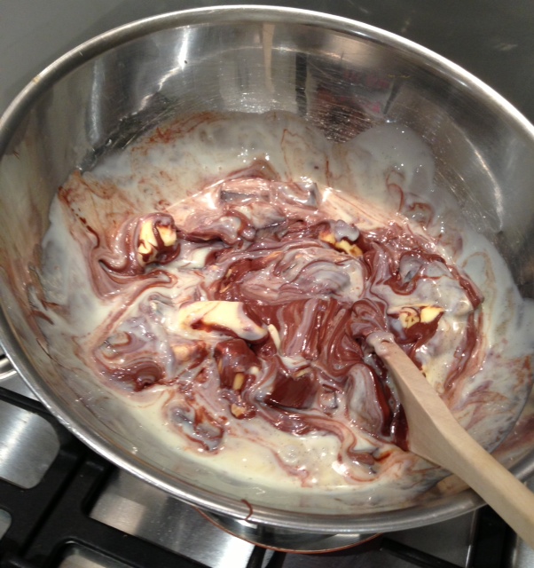 Melt all ingredients together over the water, stirring constantly until smooth and glossy.