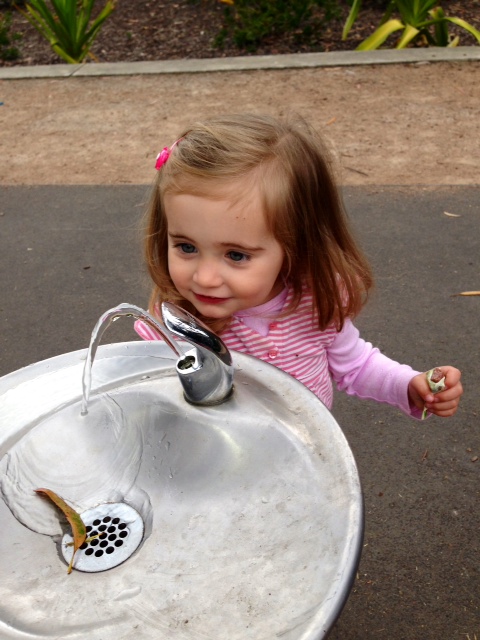 We were at an event at a park yesterday {more on that later this week} and Love Bug discovered a water fountain. One you drink at – colloquially known as a bubbler.