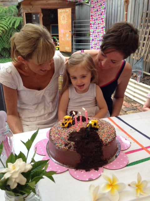 My animal loving tutu wearing Princess loves herself a digger. If we ever pass a construction site where there are diggers, I am requested from the back seat via a high-pitched, over-excited Love Bug Mumma, look, a DIGGER! Can we stop and see? Given this level of excitement, you can only imagine how she felt when this year’s birthday cake was unveiled. Best Aunty in the world strikes again!