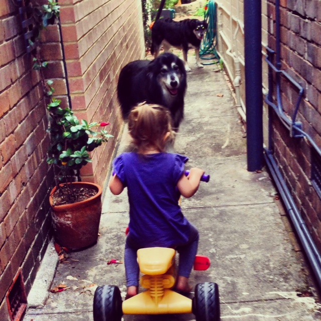 Love Bug has been continually frustrated that her legs aren’t long enough to push the pedals on her tricycle with the force required to give her forward momentum.