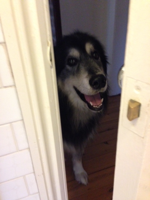 In the meantime, I was getting ready for work this morning and could hear some heavy breathing on the other side of the door, which was slightly ajar.