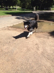 The grounds we walked in had a large area where there were no other people or dogs so I let them both off for a good run {and I ran too, and ran, and ran}. Tuckered out we plonked ourselves under a shady tree for some water. I left Beary off leash for a little longer, but Bella was happy to be on leash and wandering by my side – checking for pee-mail at every tree.