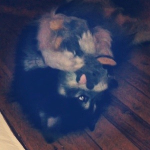 I’ve been trying to capture it on film for years but he always stops as soon as I get my camera ready. Last night I was filming he and Bella playing when Beary took Bella’s favourite toy {a brave move right there!}, flopped down and lay on his back to play with it. I was already filming: bingo!