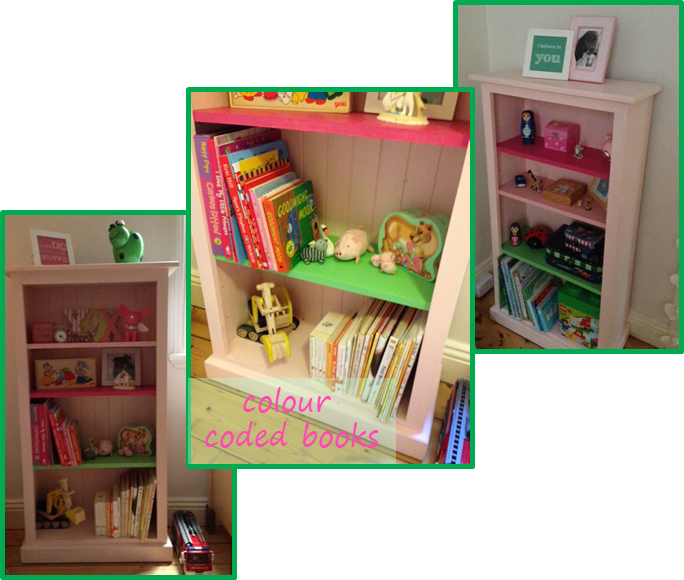little girl room - some things never change.jpg  little girl room - colour coded books digger fire truck.jpg