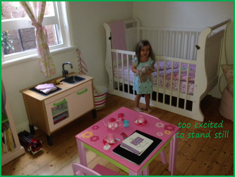 We haven’t got a big girl bed yet because she’s still happy in the cot. Mumma is still happy that she is in the cot too and hasn’t yet had the inclination – despite sleeping with the side at half mast for the past 6 months at least – to climb out. Only in. All in good time. Of course, it would also help if Mumma could decide whether to just go straight to a real big girl bed or whether to transition to another smaller bed first. Again, all in good time.