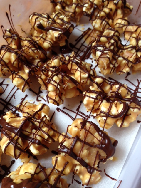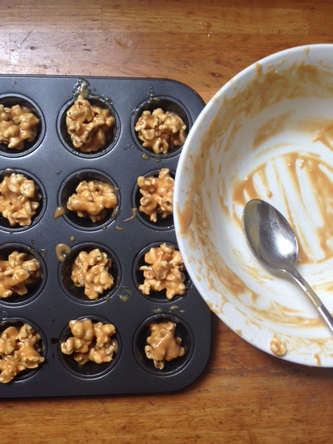 Prepare your popcorn and sprinkle it with the salt. Melt the nut paste, coconut oil and sweetener over low heat until combined. Stir through popcorn until well coated. Spoon into mini muffin tin or mini cake papers then pop in the fridge until set. Once set, melt your dark chocolate and drizzle over the top. If you want more of a chocolate hit, you could dip them in so chocolate covers half of them. Put them back in the fridge to set. Or if you live in a house like ours, put them in the freezer … which will guarantee they last a little longer! Store in an airtight {mumma-proof} container.