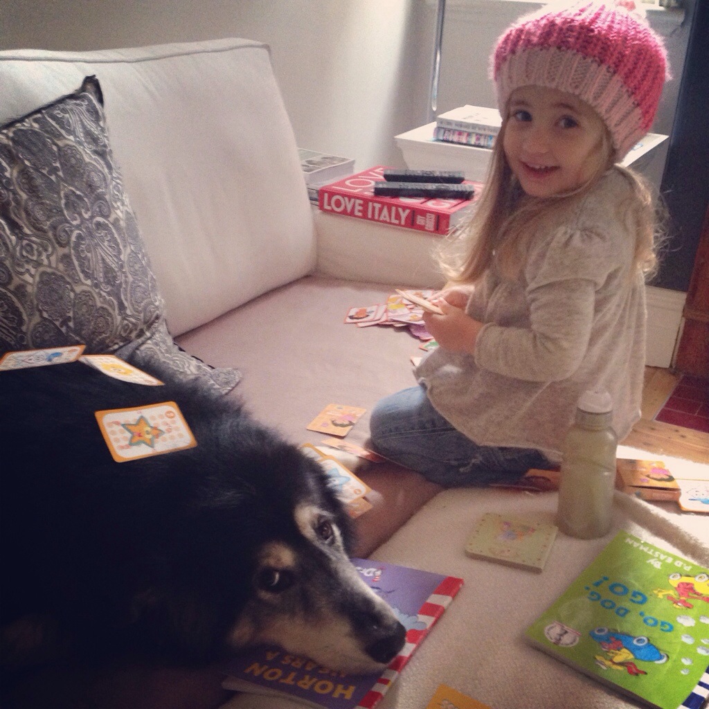 Or playing cards with his little sister.