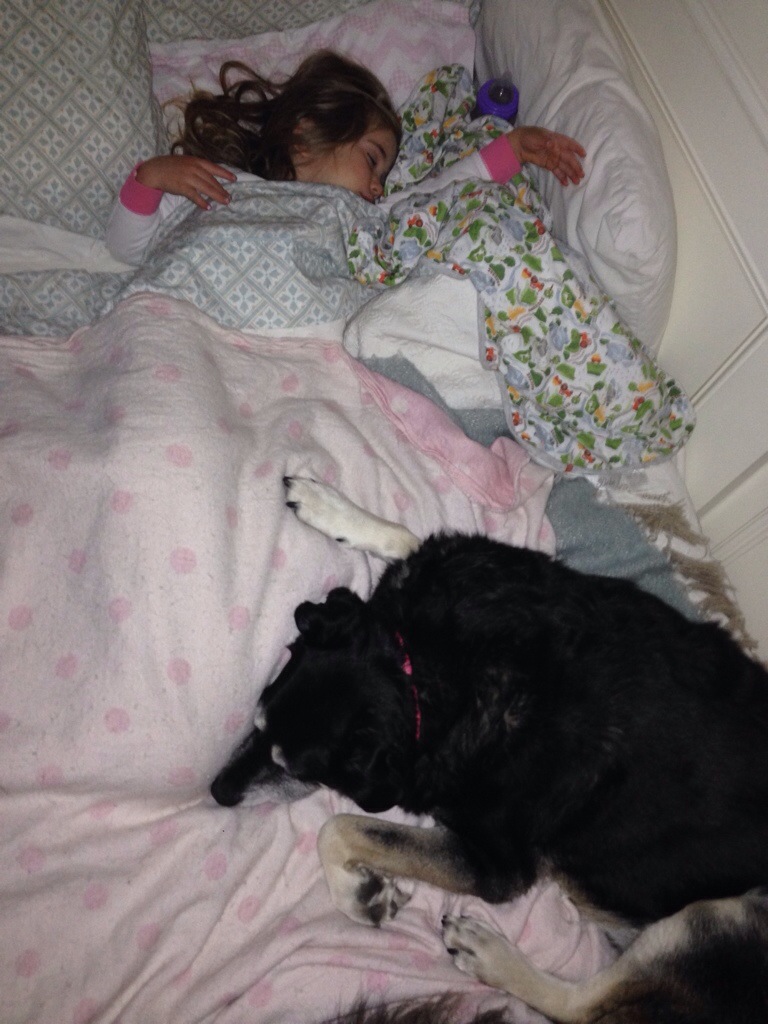 Awwww. I like to lean against Mom when we sleep. I need to make sure she doesn’t leave me!!