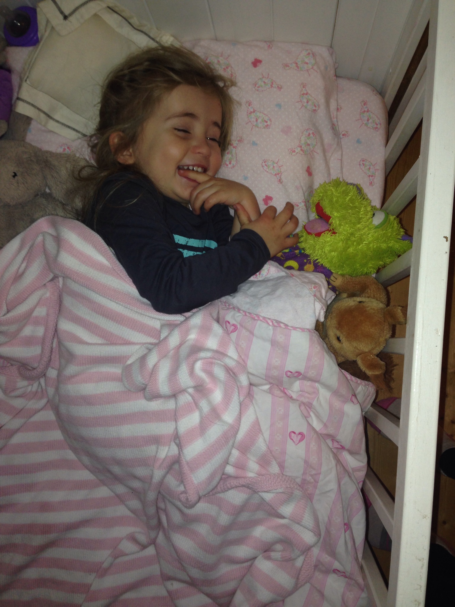Oh, my. The ‘big girl’ bed! I know she’ll love it, but it’s always an adjustment. Our little Popstar graduated to a fairly low-to-the-ground bed a while ago and has done well.
