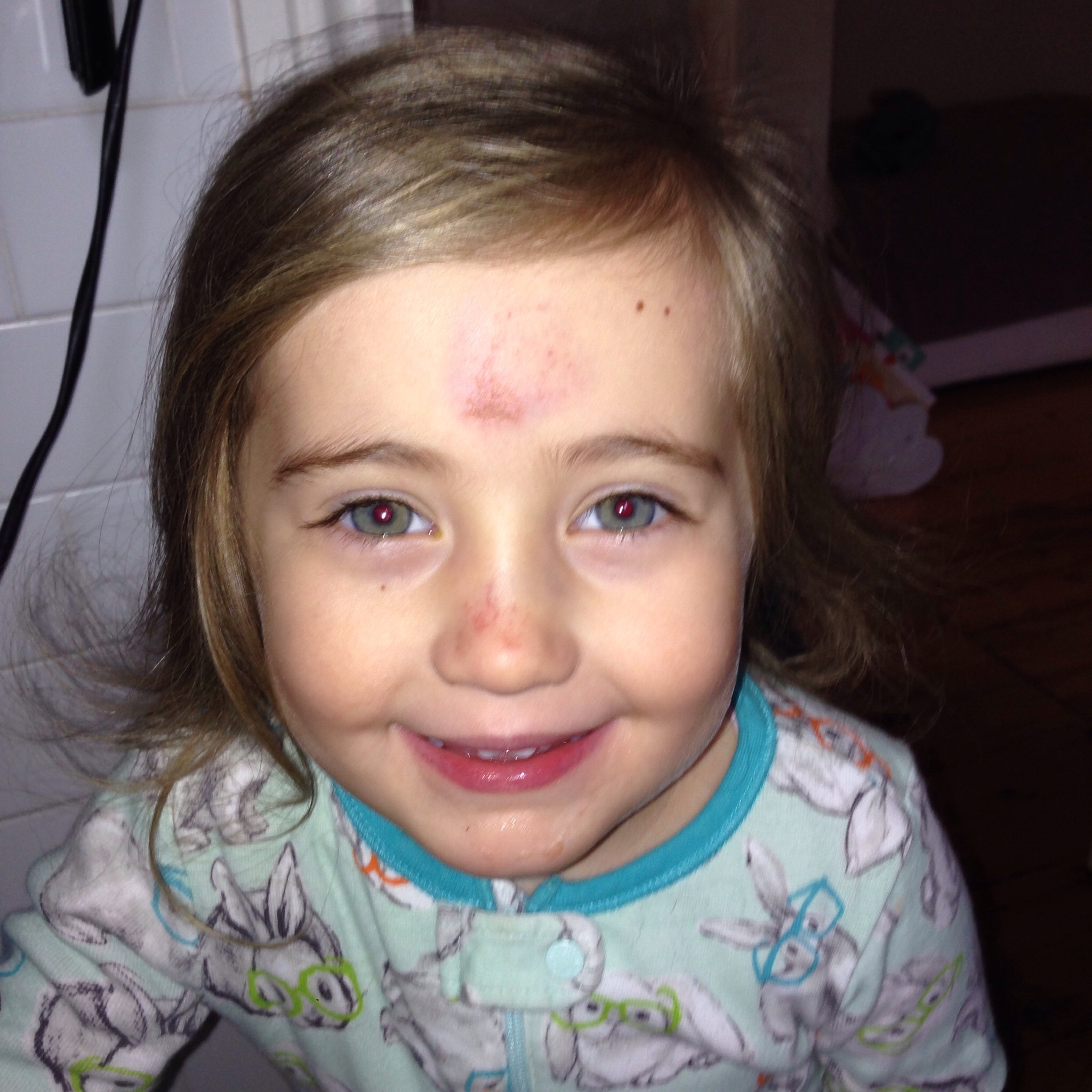 A {not-so-quick} trip to the hospital followed by a much quicker trip to our local hospital allayed all of my fears of her having a broken nose. Just severe bruising and some swelling which should settle in a couple of weeks.