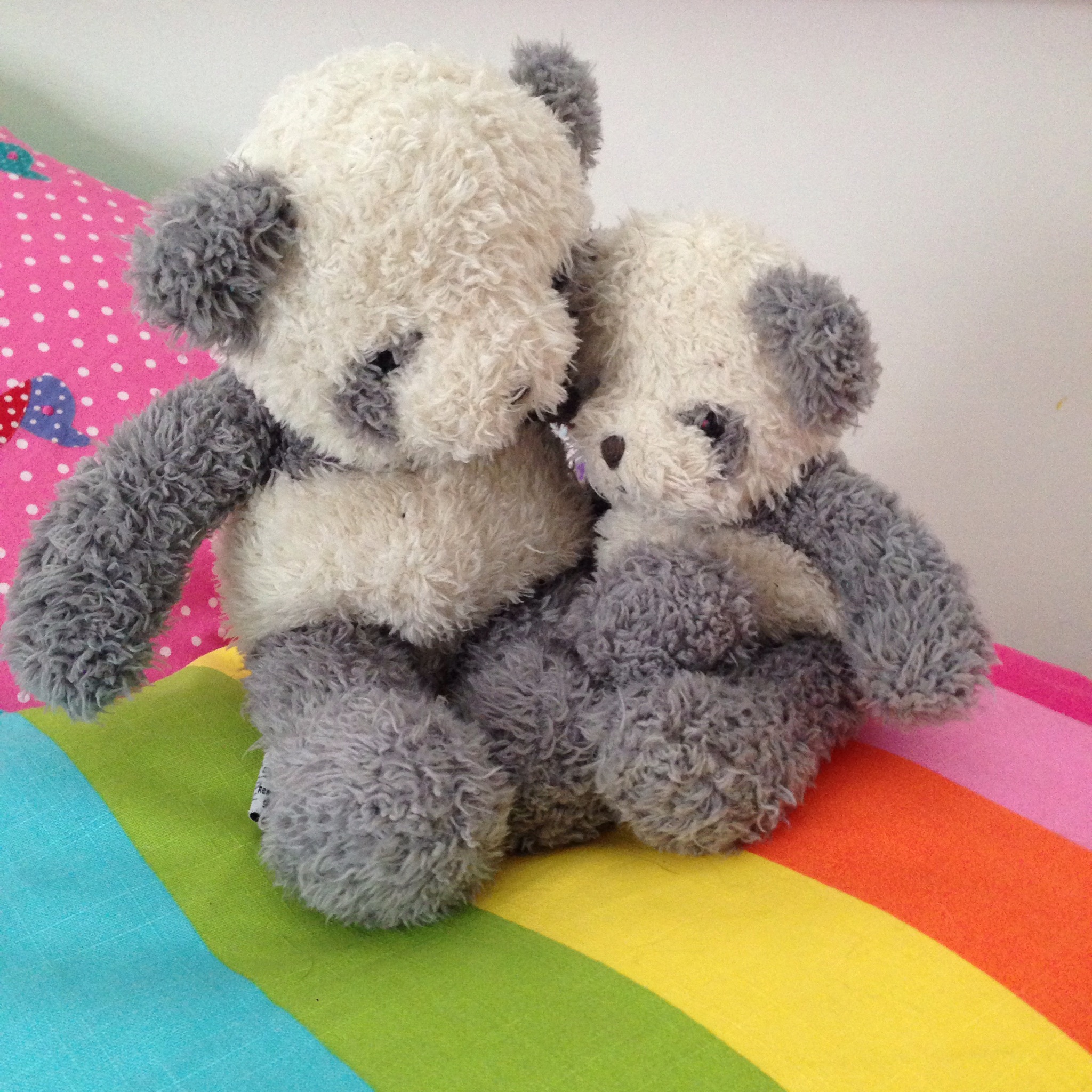 It has become a nightly ritual. Love Bug gives the bubba panda bear LOTS of kisses and cuggles. I give the mumma panda bear LOTS of kisses and cuggles.