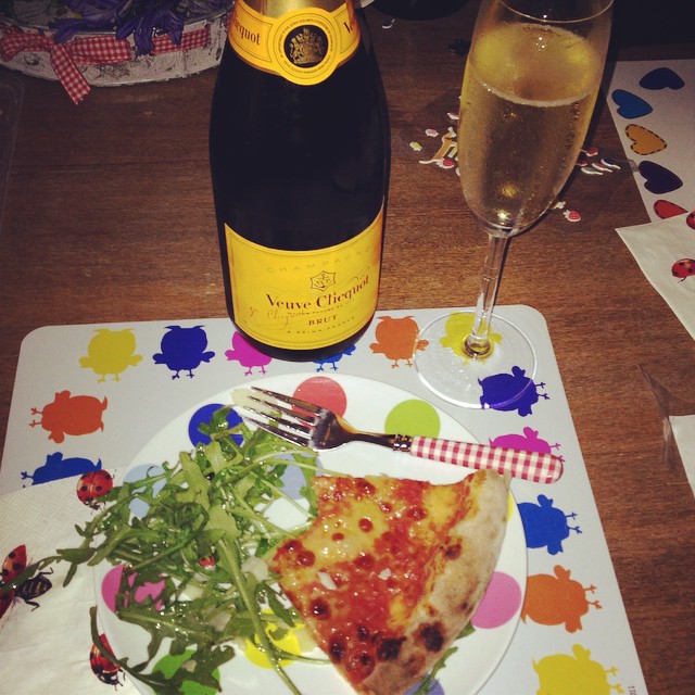French champagne and pizza of course. Well, two of the girls had French champagne. The littlest one was happy with water!