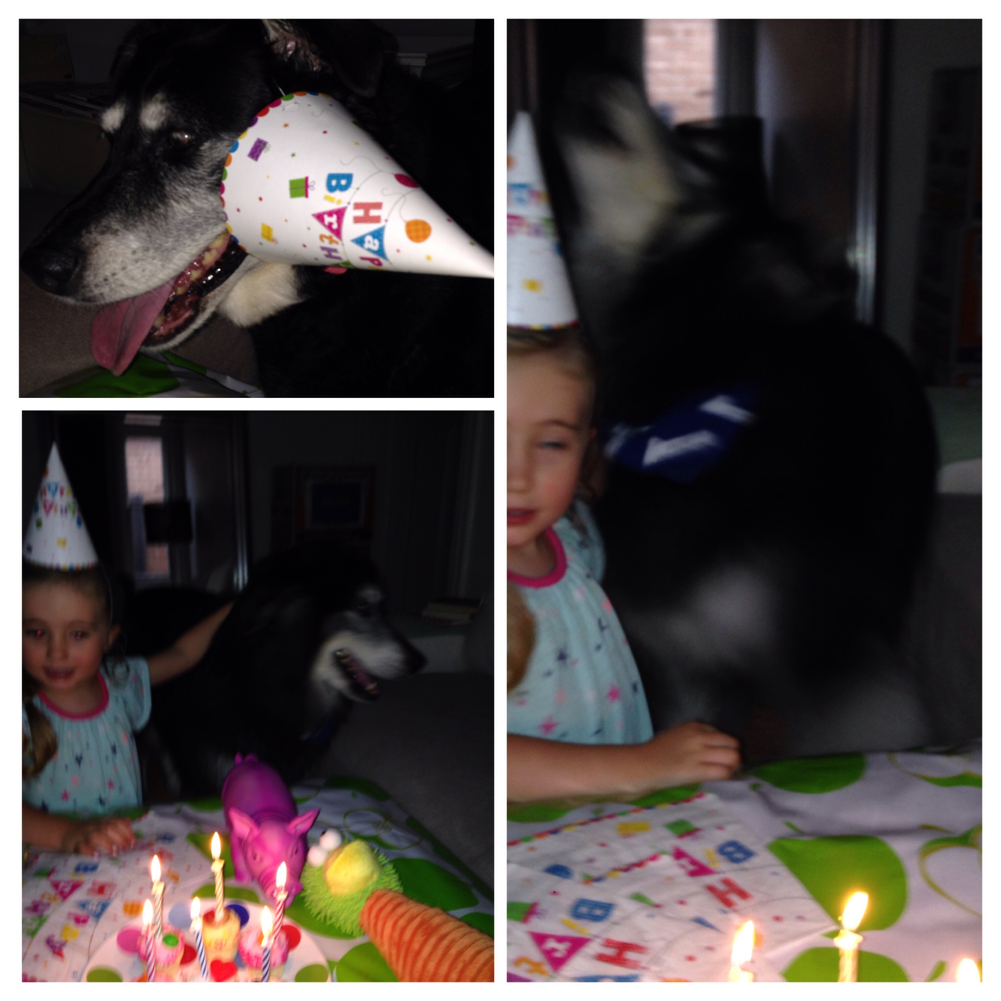 Then there are the photos that didn’t work out so well … Bella, you’re doing the party hat wrong. Beary singing along and then refusing to look at me for a photo.